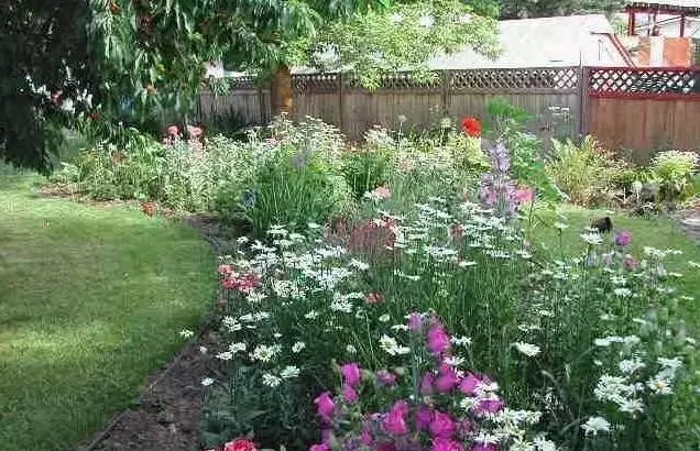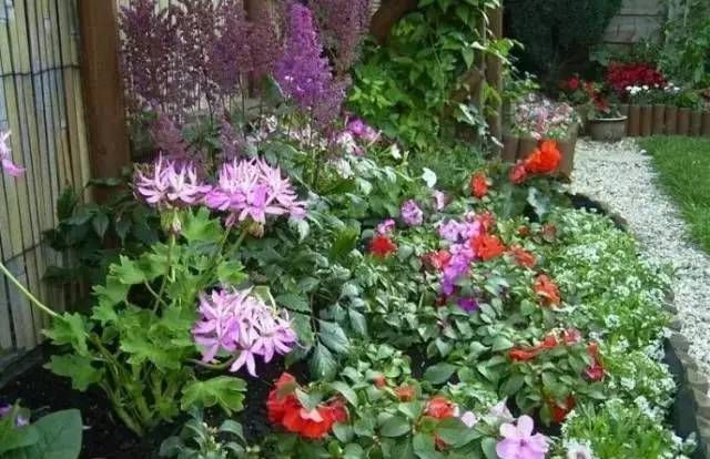 8.混合花境:以宿根花卉为主,配置少量灌木、球根花卉、针叶树或艺术小品等组成的花境。
