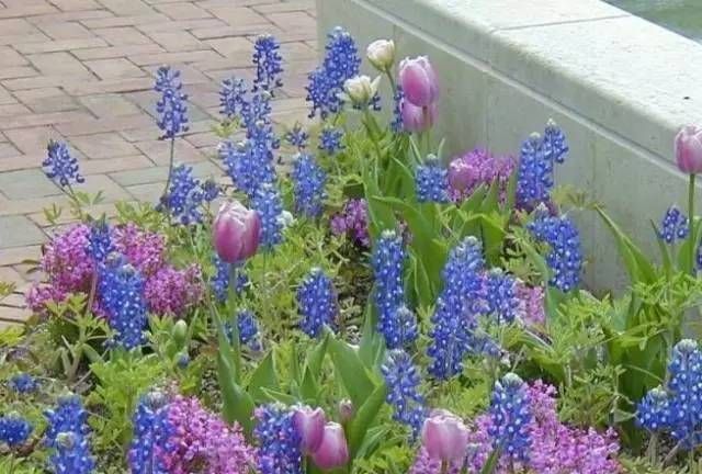 3.球根花卉花境:由各种球根花卉组合而成的花境。