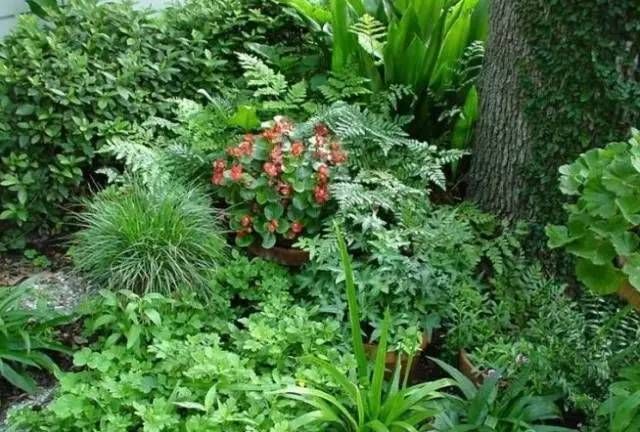 19.阴地花境:布置在比较荫蔽环境处的花境。