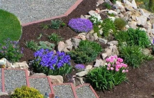15.岩石花境:模拟岩石山体自然状态,布置岩生植物或高山植物而形成的花境。